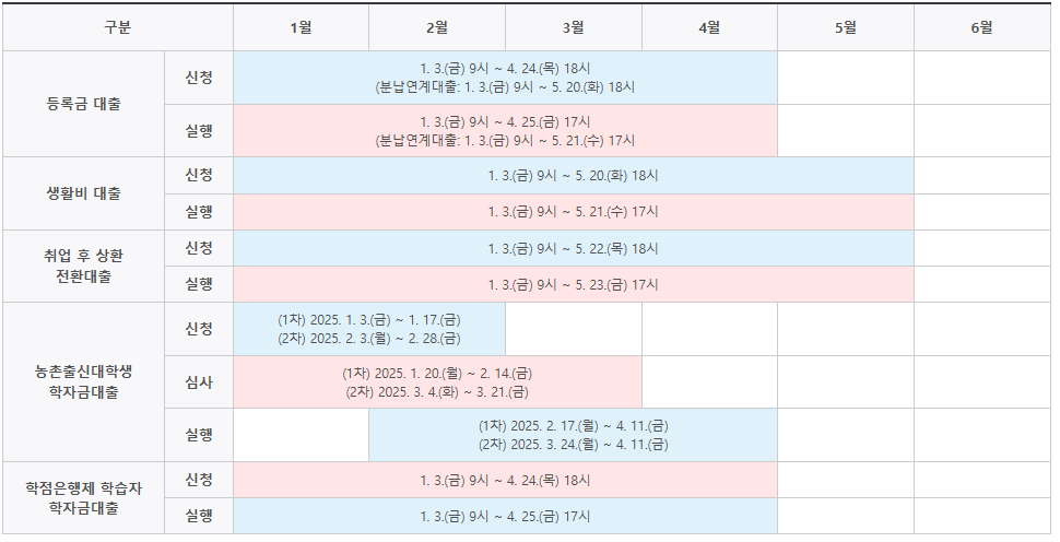 실행가능시간: 9시부터 17시까지(단, 등록금대출, 학점은행제 학습자 학자금대출은 대학(기관) 및 은행별 수납 마감기간/시간 내 실행 필수)