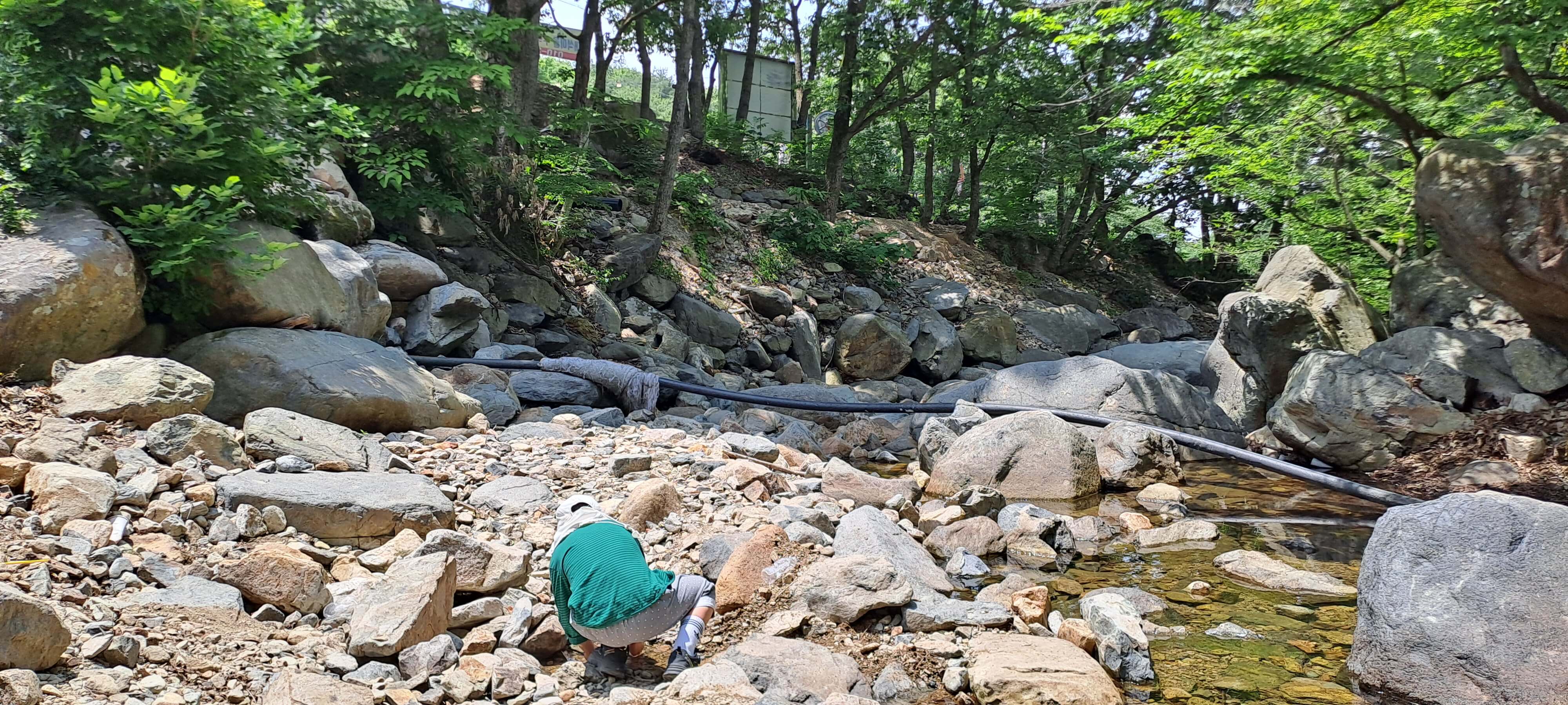 주차장도 꽤 넓었지만 주말이 되면 사람이 많이 오기 때문에 일찍 출발하셔야 합니다. 계곡은 아이들과 물놀이하기에 좋았지만, 요즘 비가 오지 않은 관계로 계곡물이 많지는 않았습니다. 계곡 물속에는 물고기들이 많아서 아이들이 잡고 놀기에 흥미로운 곳이었고, 올챙이들도 있었습니다. 햇살은 무척 따가웠지만 시원한 그늘에는 시원한 산바람이 내려와서 휴식하기에 알맞은 곳이었습니다. 이곳에서 한참을 놀 수 있었습니다.