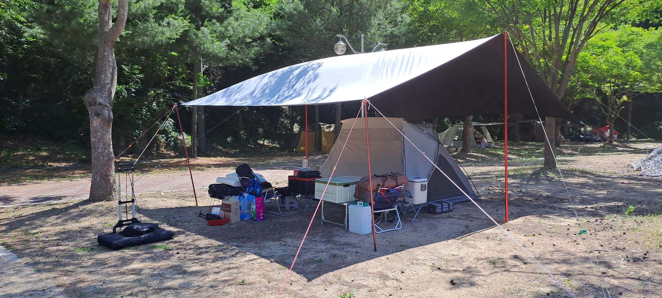 짜잔! 누드 캠핑을 한 것은 처음이지만 ㅋㅋ 시원한 바람이 좋아서 속 텐트만 치고 4일 지내볼까 합니다. 게다가 6월 초라 사람들이 많이 없어서 불편함이 없었답니다.