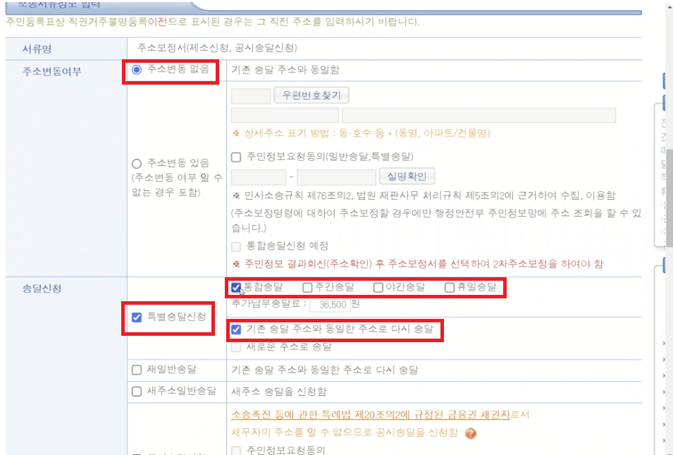 이렇게 주소보정이 나와서 특별송달까지 3번정도 송달했는데,