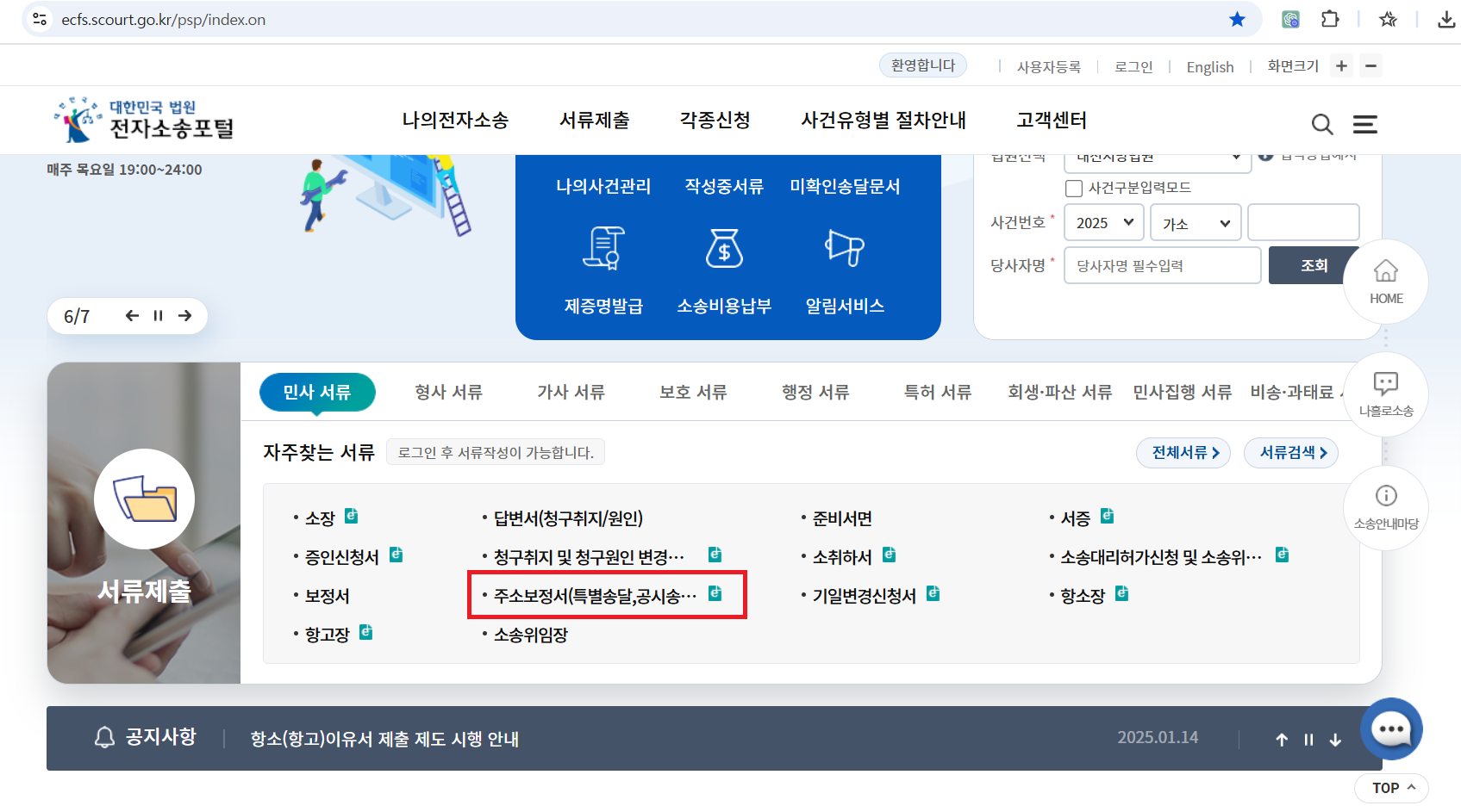 사건번호 입력 후,