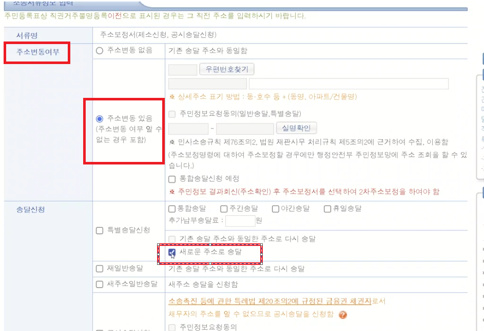 2) 채무자 주소가 바뀌지 않았을 경우