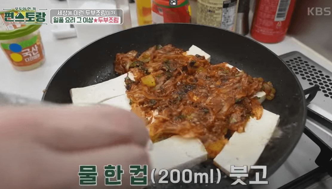 5. 다시 불을 끄고 두부, 물 200ml를 넣은 후 불을 켜 강불로 끓인다.