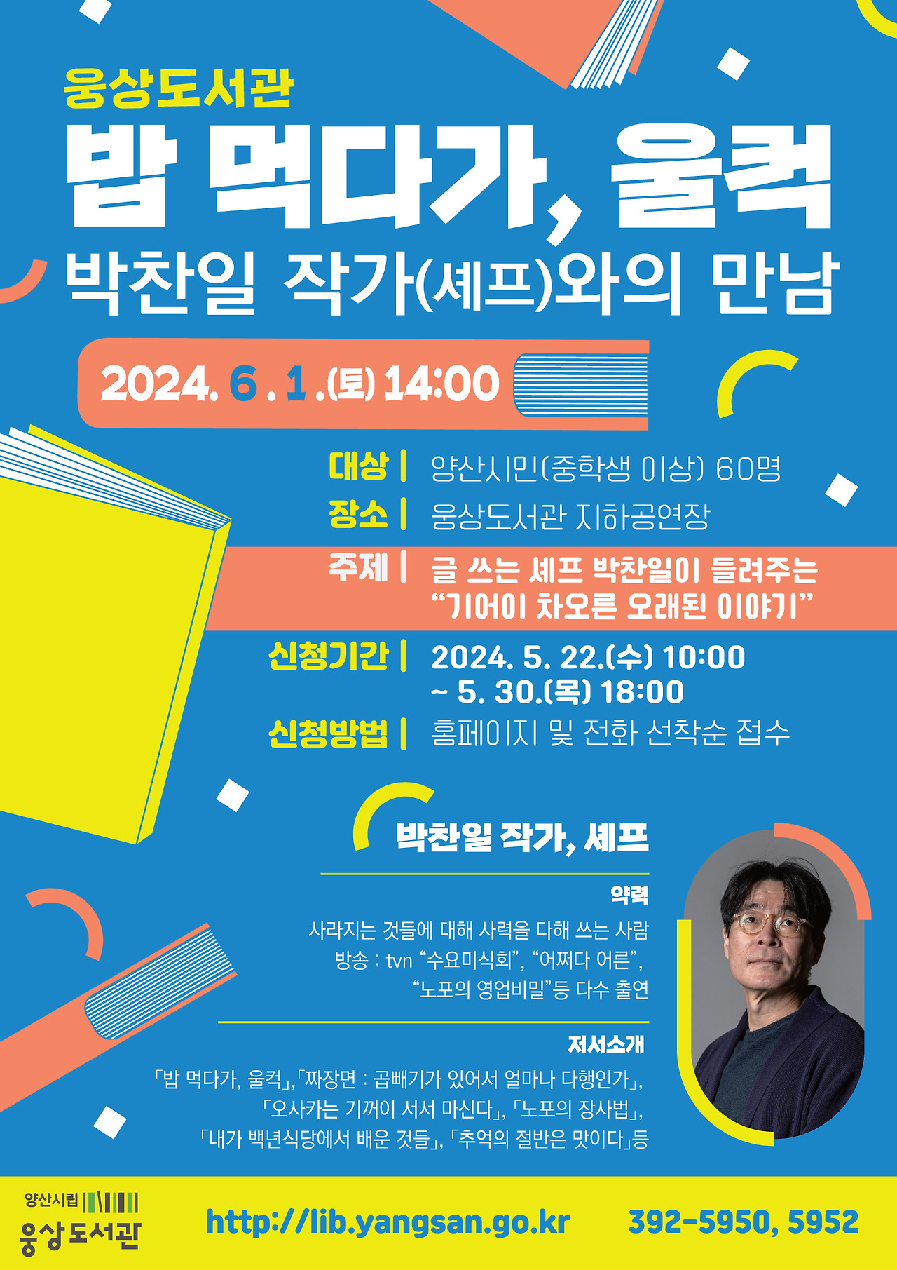 양산 웅산도서관에서 박찬일 작가(셰프)와의 만남이 준비되어 있습니다.