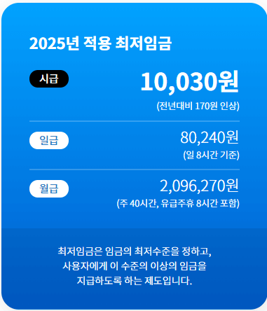 2025년도 적용되는 최저임금 금액입니다.
